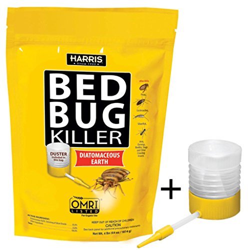 Harris bed bug killer 128 oz. Harris bed bug powder contains diatomaceous earth another potent desiccant that kills bed bugs in 48 hours. This will allow you to spray the powder deeper into crevices and cracks to stop bed bugs before they get into the room. The desiccant is registered with the environmental protection agency and organic mineral research institute.