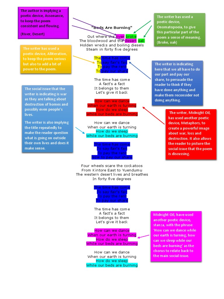 Beds Are Burning Assignment Term 4 Poetry Fiction Literature