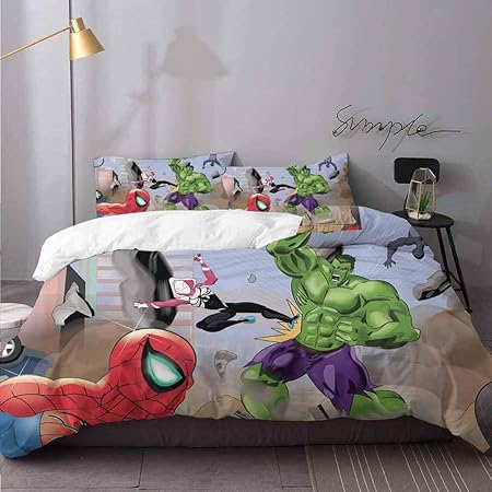 3pc Duvet Cover Set Spiderman And Spider Woman Team Versus The Hulk Qs 1 Duvet Cover And 2 Pillow Cases Bedding 3 Piece Duvet Cover Set Full Amazon Co Uk Kitchen Home