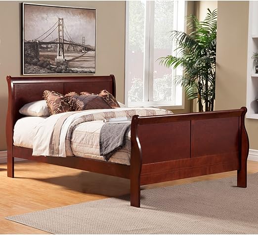 Amazon Com Alpine Furniture Louis Philippe Ii Sleigh Bed Full Size Home Kitchen