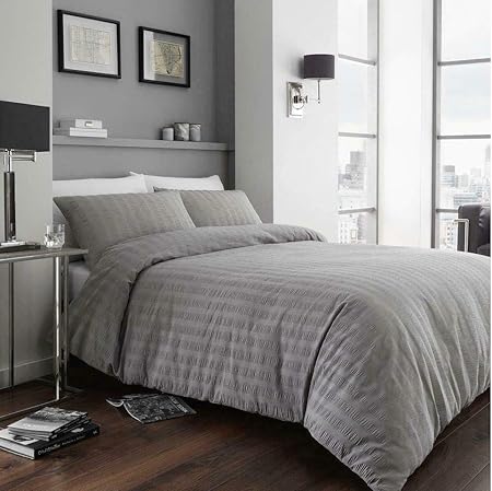 Highams Seersucker Duvet Cover With Pillow Case Bedding Set Silver Grey King Amazon Co Uk Kitchen Home