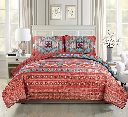 Western Southwestern Native American Tribal Navajo Design Multicolor Turquoise Red Orange Brown Bedspread Quilt Set Queen 3 Pieces Amazon Ca Home Kitchen