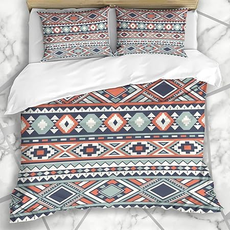 Luancrop Decorative Duvet Cover Sets Graphic Blue Aztec Ethnic Pattern Abstract Navajo Orange American Native Tribal African Culture Microfiber Bedding With 2 Pillow Shams Amazon Co Uk Kitchen Home