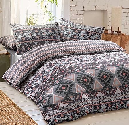 Sleepdown Navajo Aztec Grey Reversible Quilt Duvet Cover Set Pillowcases Double Amazon Co Uk Kitchen Home